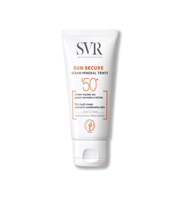 SUN SECURE Écran Minéral Teinté SPF50+ est un soin qui allie très haute protection SPF50+ 100% minérale et maquillage. Il convient aux peaux intolérantes mais aussi aux femmes qui souhaitent se maquiller au soleil toute l’année. Grâce à sa bonne couvrance, les imperfections sont camouflées, le teint unifié toute la journée. Il existe en deux versions : crème toucher sec peaux normales à mixtes et crème confort peaux sèches à très sèches.